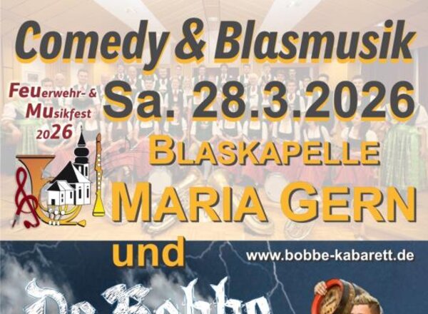 Jubiläumskozert Blaskapelle Maria Gern Comedy & Blasmusik in Berchtesgaden! Am 28. März 2026 feiern wir den großen Jubiläumsauftakt zum Feuerwehr- und Musikfest in Maria Gern - FeuMu26. Anlass: 75 Jahre Freiwillige Feuerwehr Maria Gern & 80...