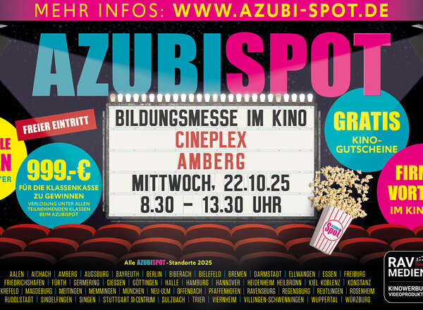 Die Messe AZUBISPOT ist das besondere Bildungsevent im Kino. Die teilnehmenden Unternehmen präsentieren auf der Ausbildungsmesse neben spannenden Ausbildungen und dualen Studiengängen auch interessante Jobangebote. Qualitativ hochwertige Gespräche...