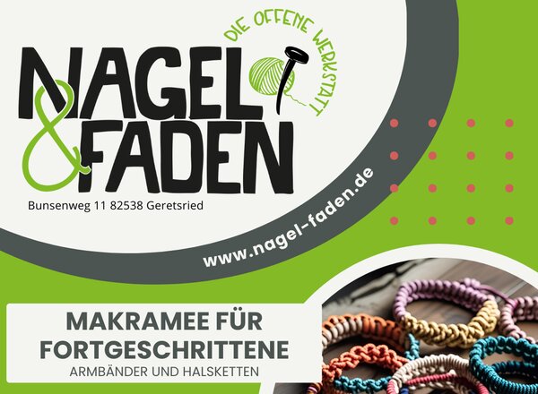 "Du beherrschst die Grundlagen des Makramees und möchtest dein Wissen erweitern? In diesem Workshop für Fortgeschrittene tauchen wir tiefer ein in die Welt der filigranen Knoten – mit dem Fokus auf individuellen, kunstvollen Makramee-Schmuck....