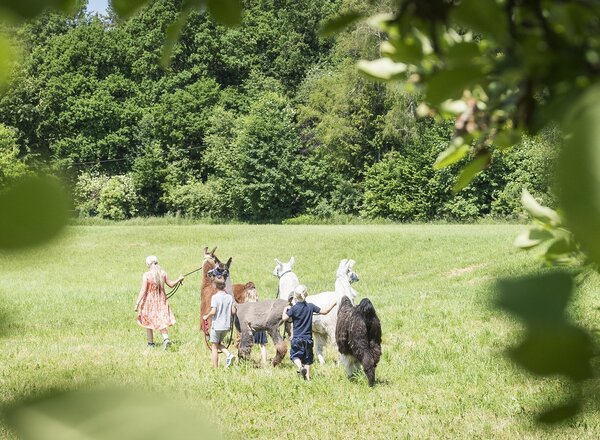 Raus in die Natur mit der ganzen Familie. Dabei mit Lamas spazieren gehen und noch allerlei kleine Naturgeschenke am Wegesrand entdecken. Die Familientour ist speziell für Familien konzipiert und schärft den Blick für Naturspielzeug, Pflanzen...