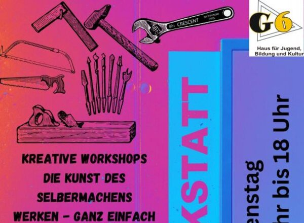 Kreative Workshops – kostenfrei! Sägen, bohren, schleifen, hämmern und vieles mehr ist im Kunstlabor des G6 möglich. Wir entwickeln Nützliches aus Abfall und designen schöne Prodkute. Der Kreativität sind keine Grenzen gesetzt. Die Kunst...