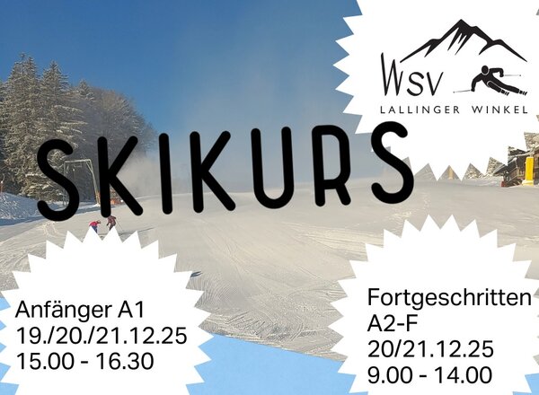 Kinderskikurse für Vereinsmitglieder! Anfängerkurs A1 19.12 + 20.12 + 21.12 Kurszeiten: 15:00 bis 16:30 Uhr Anfgäner A2 - Fortgeschrittene Kurszeiten: 20.12./21.12 von 09:00 bis 11:00 Uhr und 12:00 bis 14:00 Uhr mit gemeinsamen...
