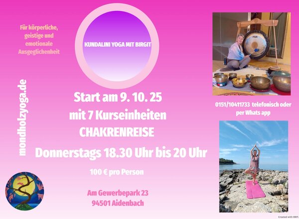 Yogastunde für Anfänger und Mittelstufe. Wir stärken Bauch, Beine, Po und arbeiten an unserer Ausdauer. Kosten: 18,- €/Person Anmeldung unter: 0174 - 6118144 Zusätzliche Stunden: Montag und Donnerstag auf Anfrage Infos...
