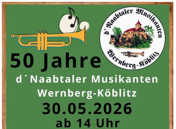 50 Jahre d´Naabtaler Musikanten. Zünftige Wirtshaus- und Biergartenstimmung bei bayrisch-böhmischer Blasmusik. Für Essen und Trinken ist bestens gesorgt.