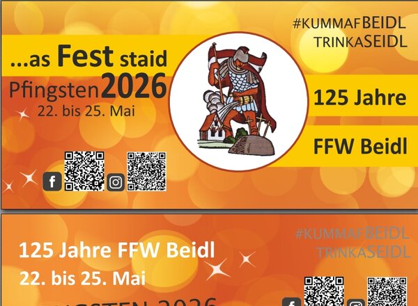 Die Freiwillige Feuerwehr feiert Pfingsten 2026 ihr 125 Jähriges Vereinsjubiläum, für das leibliche Wohl ist mit regionalen Schmankerl bestens gesorgt.
