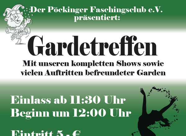 Gardetreffen 2026! Wir freuen uns, euch zu unserem Gardetreffen am 18. Januar 2026 einzuladen. Ort: Beccult Pöcking Einlass: 11:30 Uhr Beginn: 12:00 Uhr Euch erwartet: - unsere Shows der Kindergarde, Mini Mania und Dancing...