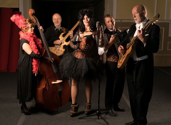 Kurkonzert mit dem Gastensemble Randolph Sachs, Gitarre Berny Steinhilber, Gitarre, Gesang Elke Mattheis, Gesang Hans Zunhammer, Akkordeon Karen Thanner, Kontrabass Tauchen Sie ein in eine Epoche zwischen Glanz und Abgrund – in die Zeit...
