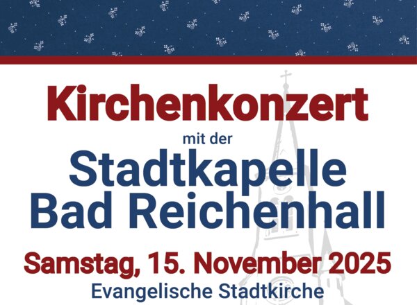 Die Stadtkapelle Bad Reichenhall lädt herzlich zu ihrem traditionellen Kirchenkonzert in die Evangelische Stadtkirche ein. Das Konzert findet am Samstag, 15. November 2025 um 16:30 Uhr statt. Der Eintritt ist frei – über Spenden zugunsten der...