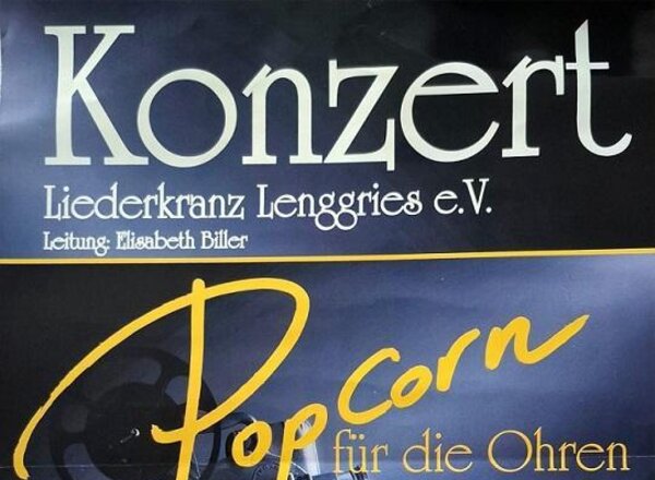 Unter dem Motto "Popcorn für die Ohren" wird Filmmusik zum Besten gegeben Leitung: Elisabeth Biller Pfarrheim Lenggries an der Geiersteinstraße Der Eintritt ist frei - Spenden sind willkommen.