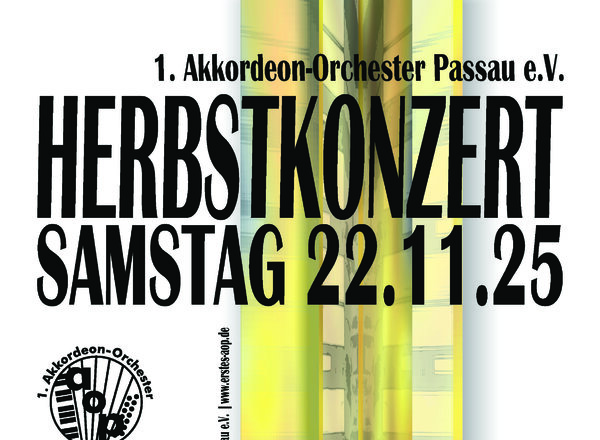 Das 1. Akkordeon-Orchester Passau lädt alle herzlich zum diesjährigen Herbstkonzert ein. Schülerorchester, Jugendspielgruppe, Stammorchester und Orchester oN gestalten ein vielfältiges Programm und bereiten damit allen Zuhörern einen kurzweiligen...